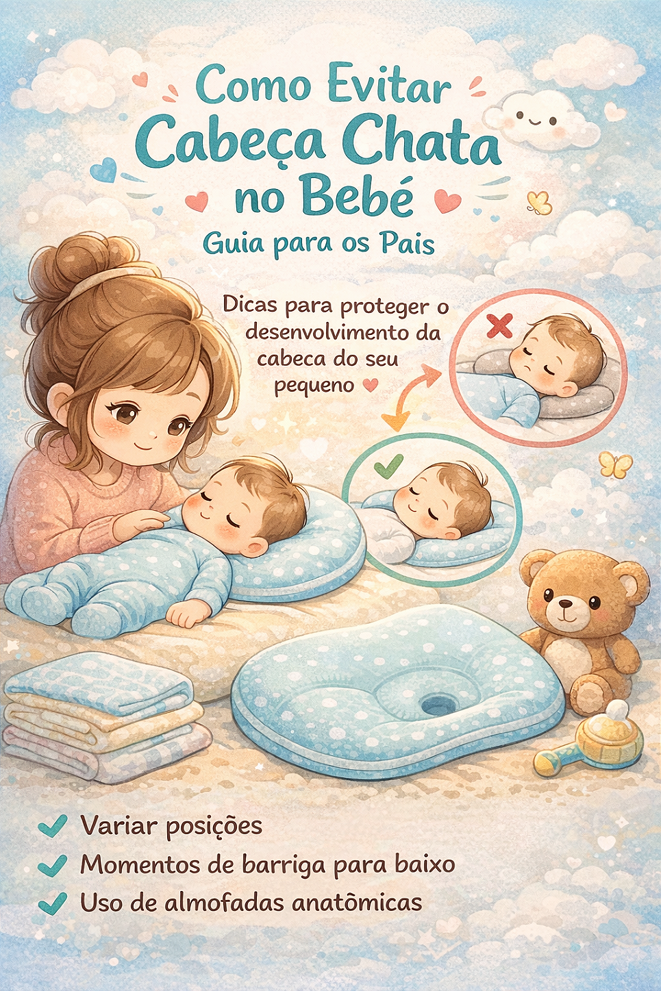 Variar a posição do bebê, estimular diferentes posturas durante o dia e utilizar apoio adequado podem ajudar a reduzir o risco.